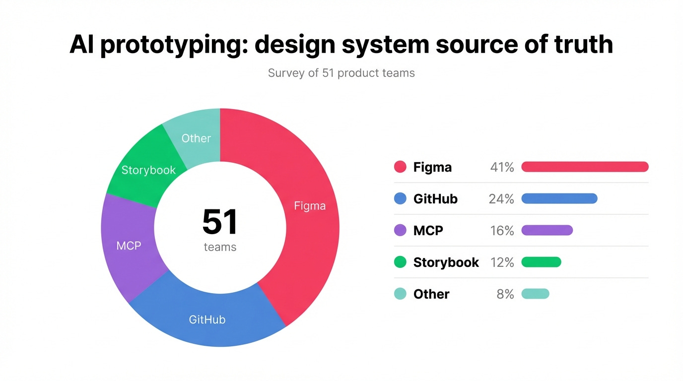 This isn’t theoretical. Based on a small subset of data from a popular AI prototyping tool, only 41% of teams selected Figma as their import source when adding a design system. A combined 36% were code (Github + Storybook), and another 16% were MCP.
