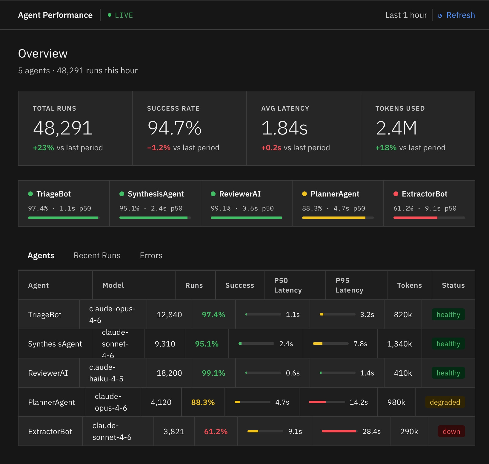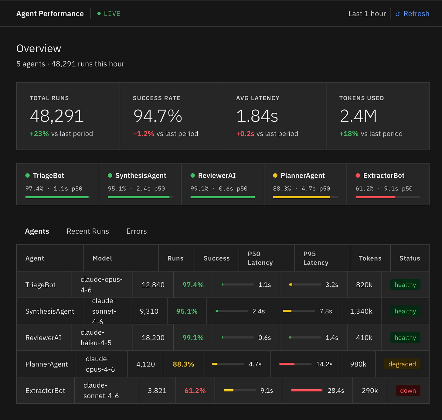 Visually, the output looks almost identical, but the code is now using our real components. You’ll noticed the difference in the table formatting, the tabs, and the cards.