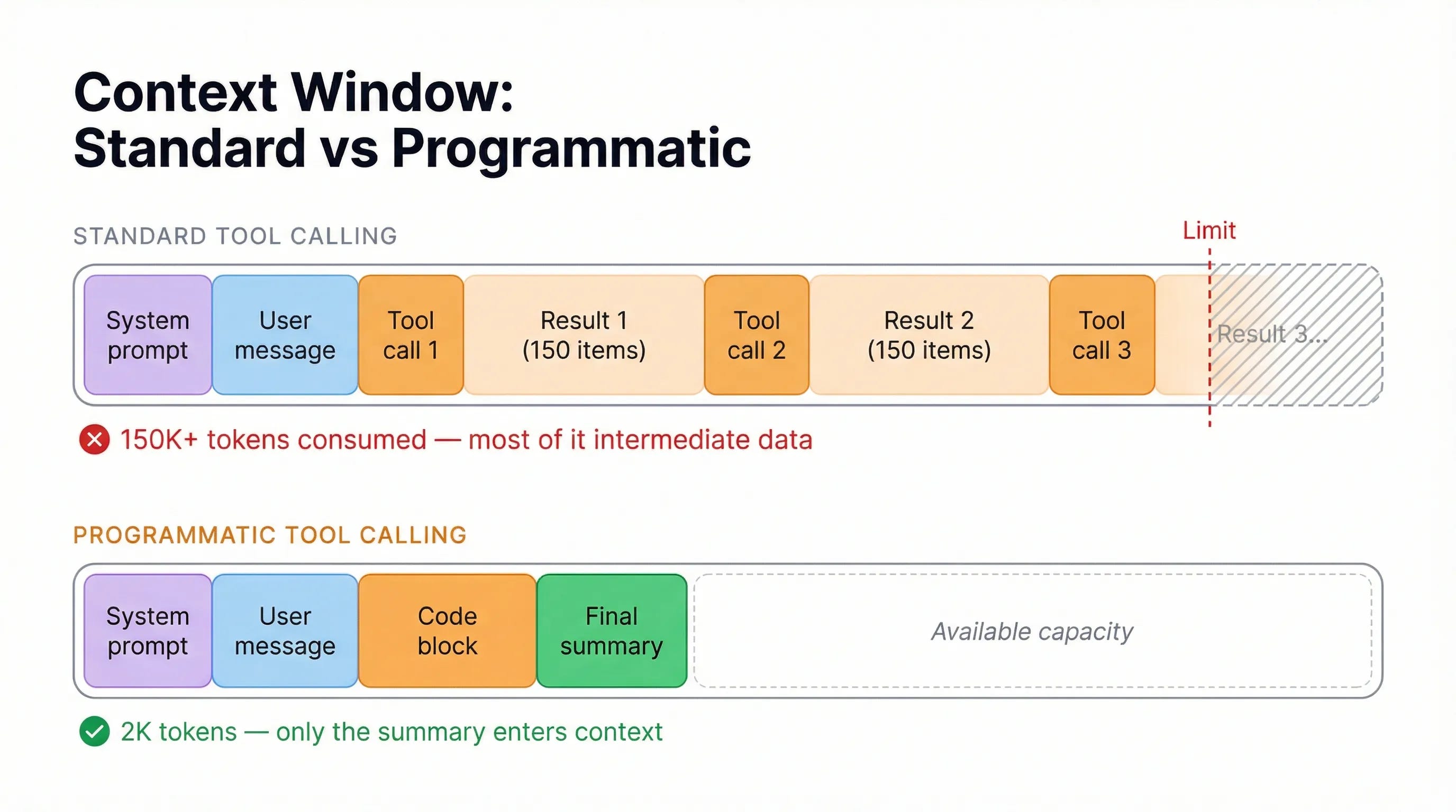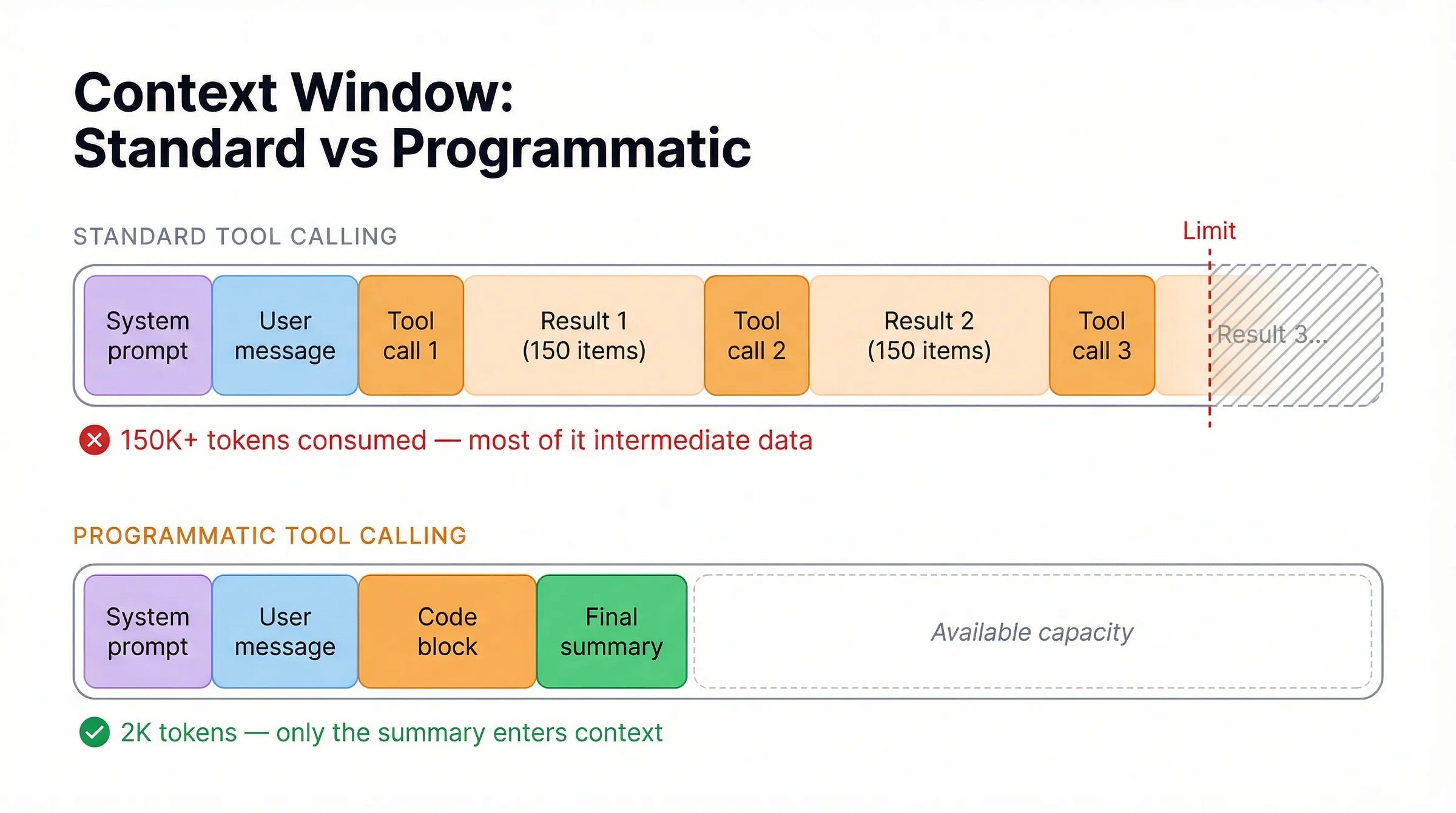 And finally, here’s what our context windows would look like between standard and programmatic tool calling: